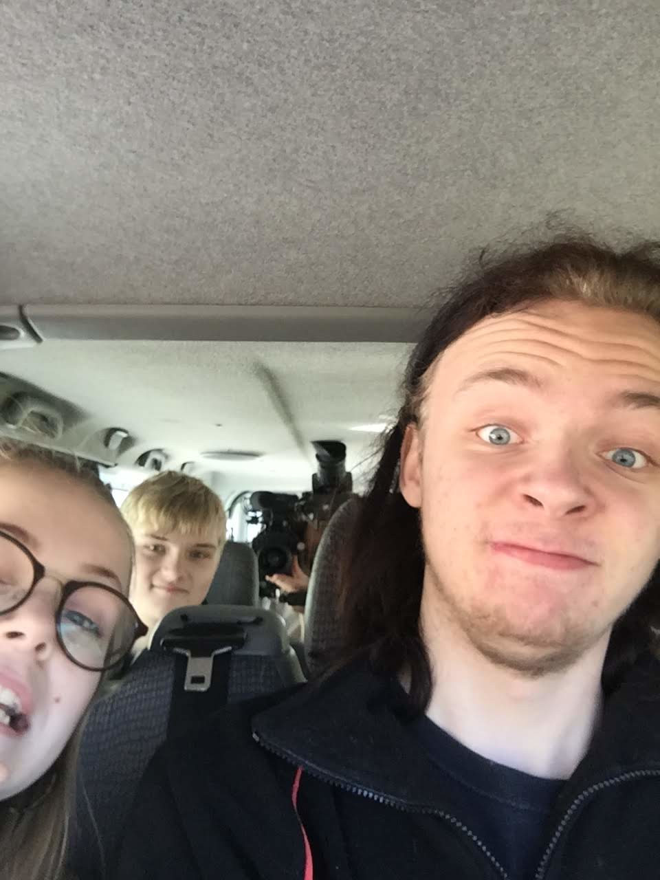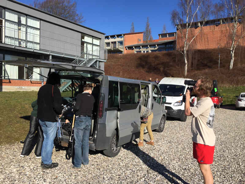We all loaded our gear into the slightly-broken-but-still-working "bus" (actually a small Renault van) and then drove off to Mellerup. When we arrived, we noticed some bigger buses than ours. As we were ready to unload our "bus", a cameraman approached us and asked us to drive around and come back with him on the backseat to film our arrival, and after that, we went to unload our gear at the gym, the location of the shoot. The band was already shooting some takes with a few bands from the school, but we weren't interrupting. After all, the video concept was built on the band starting to play alone, while more and more bands joined in, so this was also filmed.