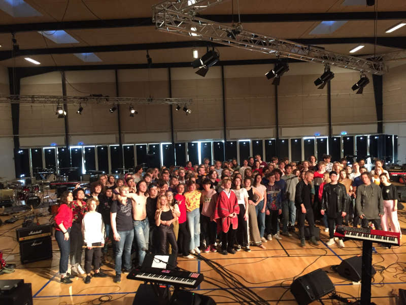 One day after lunch, our music teacher calls the band in for a short meeting. He had just received an invitation for us to participate in a music video for a well-known Danish band called Carpark North. They were going to celebrate their 20th anniversary by doing a music video in the efterskole, where they first met and became friends. To make it a bit more special, they invited five other efterskoles to their school in Mellerup and play their biggest hit Transparent And Glasslike with 'em.